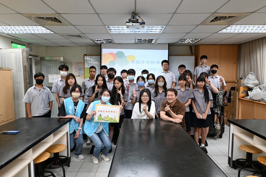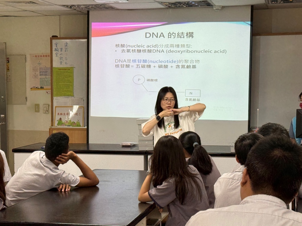 本系於2025年7月24日舉辦「新北淡江高中大學體驗營」,此次課程以「認識DNA」為主題,介紹遺傳物質DNA的基本組成與功能,並說明DNA如何透過轉錄與轉譯等過程,控制生物的發育與生理功能。為強化學生對抽象概念的理解,課程安排「DNA模型拼接」的實作活動,協助學生認識核酸的雙股結構與鹼基配對原則,加深對分子生物學基礎的認識。